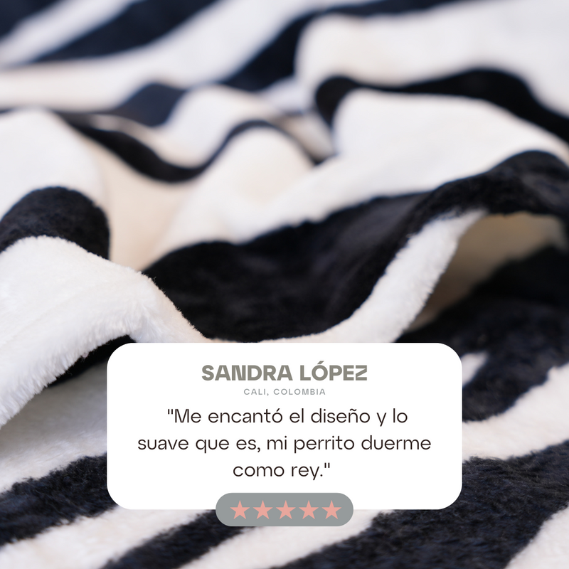 La Cobija Pet Cebra está diseñada para dueños que buscan un accesorio distinto, moderno y elegante para consentir a sus mascotas. Su estampado en blanco y negro tipo cebra no solo destaca por su diseño llamativo, también se adapta fácilmente a cualquier espacio del hogar, convirtiéndose en un complemento decorativo.