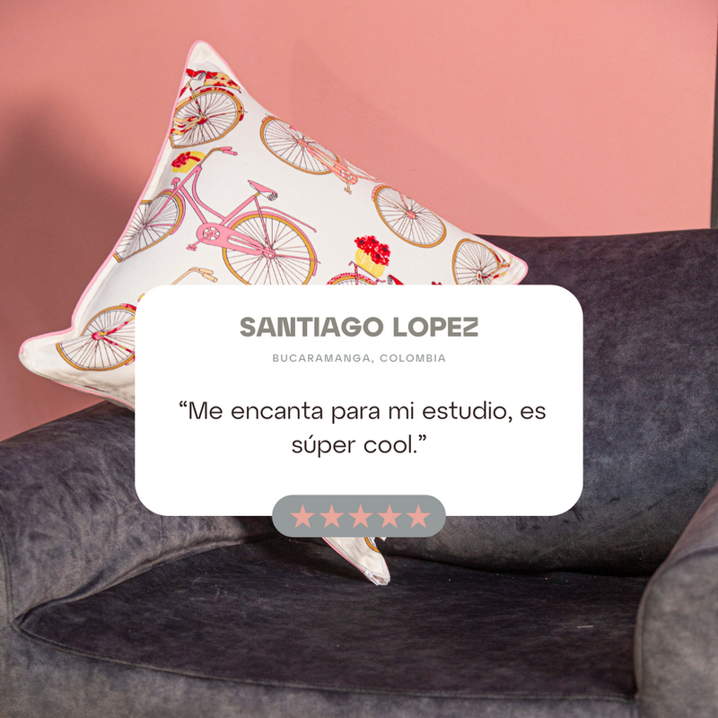 Este cojín estampado con bicicletas es la opción perfecta para quienes buscan añadir dinamismo y frescura a su hogar. Ideal para espacios juveniles o modernos, su diseño activo aporta un toque de energía. Además de su atractivo visual, su suavidad lo convierte en un cojín cómodo para descansar. Es el regalo perfecto para los amantes de la aventura y el aire libre.