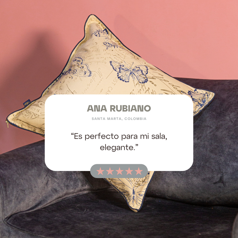 Este cojín estampado con mariposas no solo es un hermoso adorno, sino que también introduce un aire de calma y frescura a tu hogar. Su diseño delicado lo convierte en una excelente opción para crear espacios relajantes. Fabricado con materiales suaves, es perfecto para quienes buscan un toque de elegancia y comodidad. Es el regalo ideal para quienes aman lo natural y lo delicado.