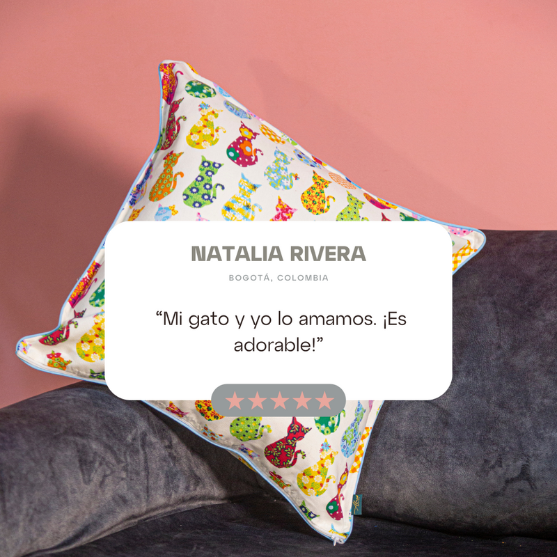 Este cojín estampado con gatos es la opción perfecta para los amantes de los felinos. Su diseño divertido y juguetón agrega un toque único a cualquier espacio. Además de ser un accesorio decorativo adorable, su suavidad garantiza el confort ideal para momentos de descanso. Es el regalo perfecto para quienes adoran los gatos, ofreciendo un detalle lleno de personalidad y ternura.
