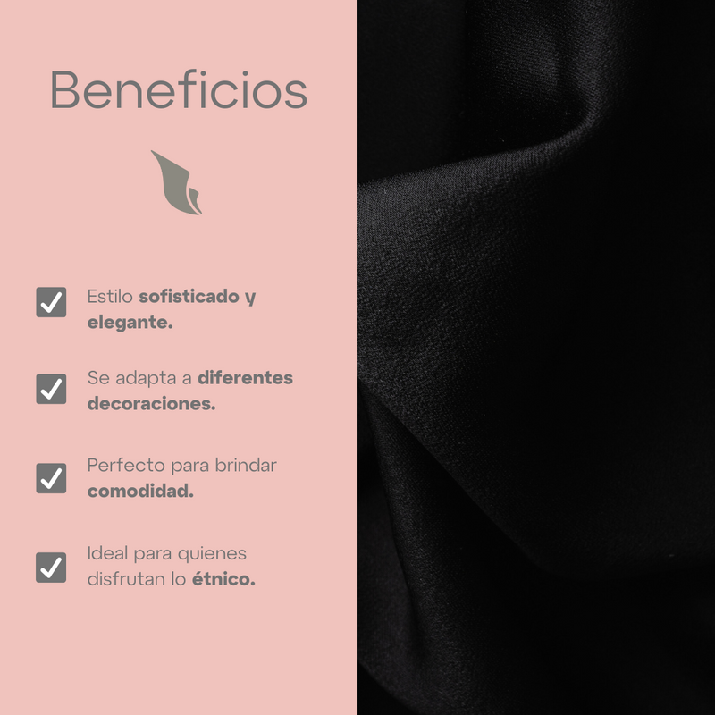 El cojín estampado tribal negro ofrece un diseño moderno con un toque étnico único. Su estampado elegante y versátil lo convierte en el complemento perfecto para cualquier estilo de decoración, desde lo moderno hasta lo boho. Además de su estética impresionante, es extremadamente cómodo, proporcionando un gran soporte y confort. Es el regalo ideal para quienes aprecian la mezcla entre lo tradicional y lo contemporáneo.