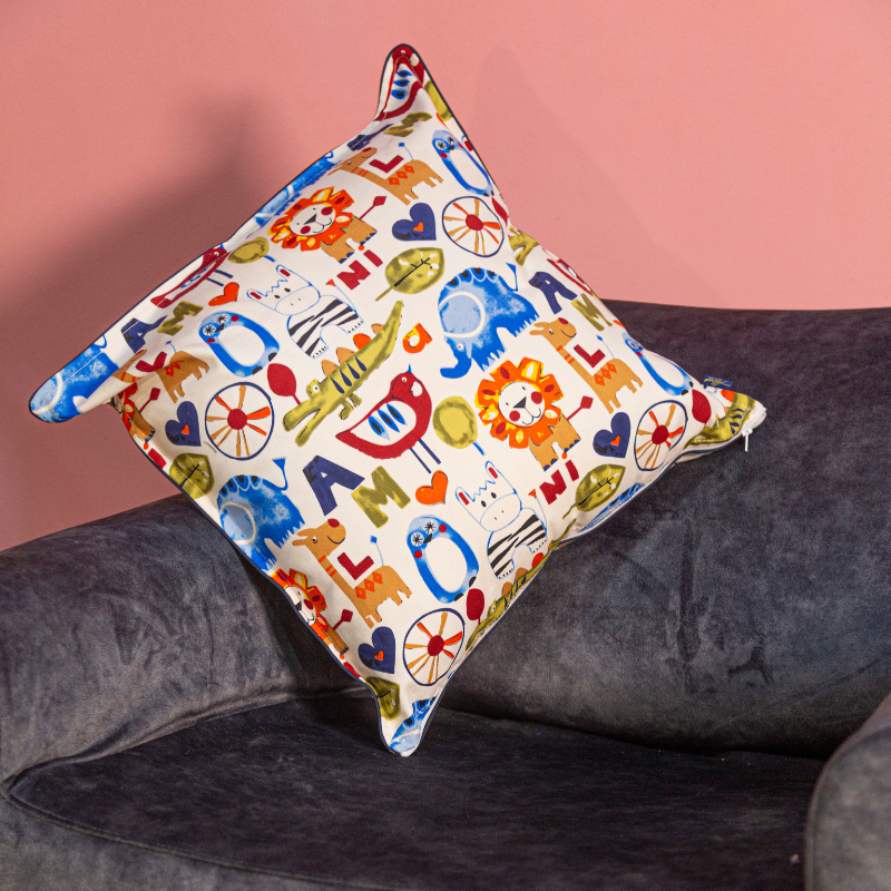 Funda Cojín Estampado Zoo Colorido
