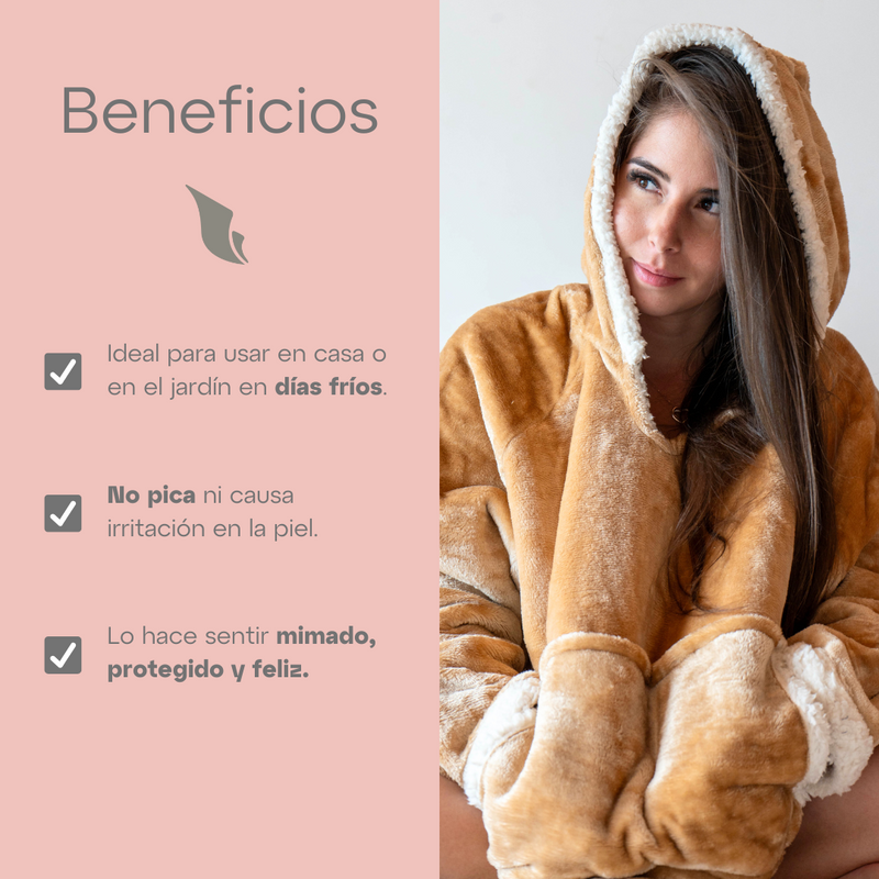 El tono camel es un clásico que nunca falla. Este buzo oversize es perfecto para quienes buscan una prenda funcional y bonita. Fabricado con tela tipo peluche, es abrigado pero ligero, ideal para el uso diario. No pierde forma ni suavidad con el lavado y su diseño amplio permite usarlo por varias temporadas. Es un regalo práctico, con mucho estilo y duradero.